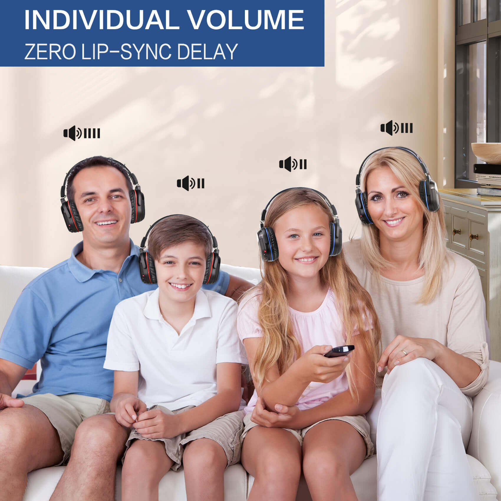 - [Individual Volume Control] Each headphone features an independent volume control button, enabling you to personalize your volume preference without affecting other users connected to the same transmitter.